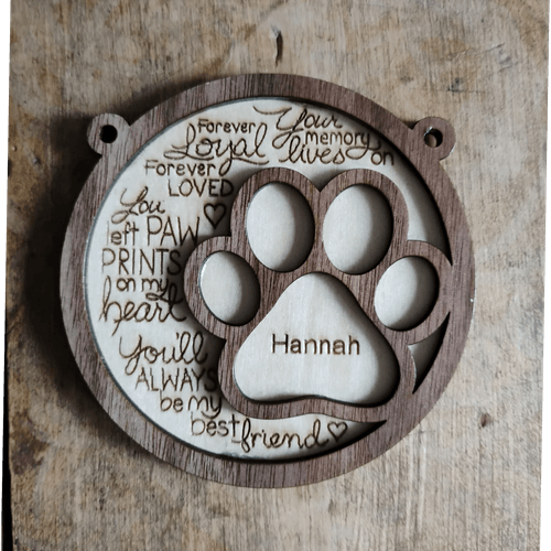 Custom Pet Plaque Ornament Honor your dog or cat with this versatile wood keepsake—customizable with your pet’s name. Use it as a tree ornament, shelf décor, or year-round tribute.